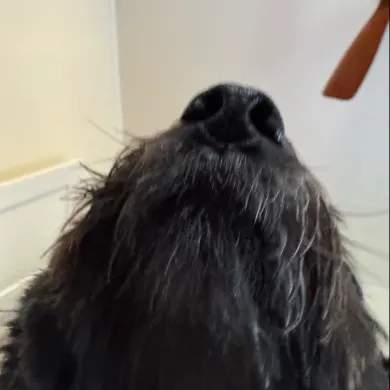 Opal was found wandering the mean streets of LA. She was in poor shape probably from overbreeding and was a mess. My husband and our other dog Benny were none too pleased when she came to us. But now we’re one big happy family! Opal’s favorite pastime is finding peanuts that the squirrel’s hide and eating them whole before I have a chance to get them out of her muzzle.