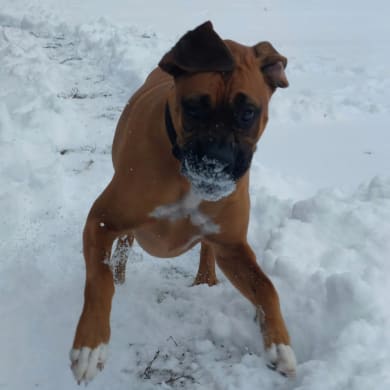 Baron is a 3yr old Boxer Rescue. He is extremely lovable, a very silly playful boy, a snuggle bug, very smart, learns easily, loves his toys & balls, especially loves his wiggle-giggle ball and of course any toy with squeakers. I adore him and I think he feels the same 😊❤️😊