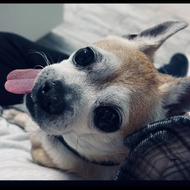 Kaptain is 16 yrs old. I am actually his sissy. Our mama passed 3 yrs ago and now Kap lives with me. He is a “cheese connoisseur” and would eat cheese all day long if allowed. He loves to sleep also. He does have asthma and heart disease but does good on his meds. He is the sweetest little boy. :-)
