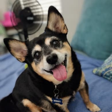 Jerry is a 19 yr. old Corgi mix. He's an amazingly sweet and layed back dog who brings a smile to everyone he meets. I adopted him from the pound when he was 3 yrs. old and we've been inseparable ever since. This includes visiting 12 different states together, and currently enjoying the beach life on the east coast.