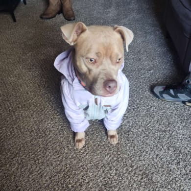Loves blankets, cuddles, sweaters, snacks, and naps. Will tap you if you're not giving her attention. Lap dog. Loves to be cradled like a baby.