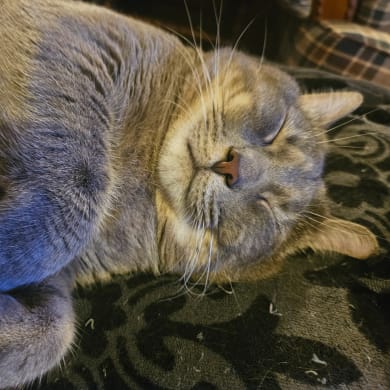 I know, I'm not a dog but I am a beloved pet. I was found as a stray with no mother at 4 weeks old in September of 2023. I fought hard and barely survived. I love spring toys, string toys and belly rubs. I'm also dog friendly and a big ham.