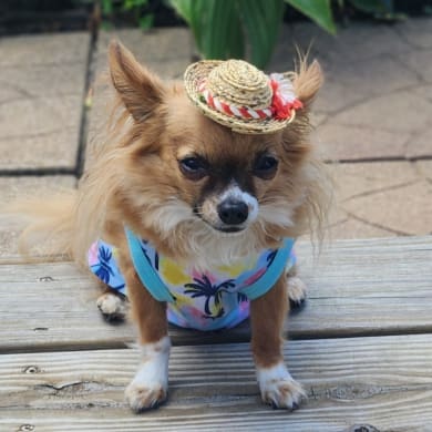 Clyde is a shy guy. We got him from Mexican village. He's a sweetie and like to go on walks and try to bite ankles!