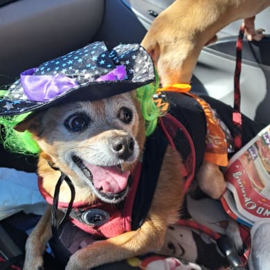 Senior rescue estimated 15 years old Chihuahua mix Living her best life Has mama trained Queen of all she sees