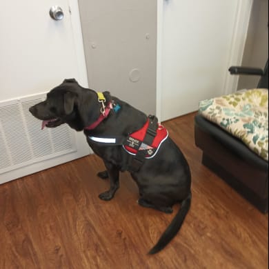 I rescued Mojo two and a half years ago from the Gaston County animal control shelter he was an owner surrender they said he was anxious he was there for over a month and they were ready to euthanize him he is perfect he obeys commands he doesn't bark he is absolutely without a doubt deserving of my loving home including cooking for him three times a month because he is such a big boy but he still likes home cooked food very lovable cuddly and always wants to be near me but he loves everybody so it may not just be me
