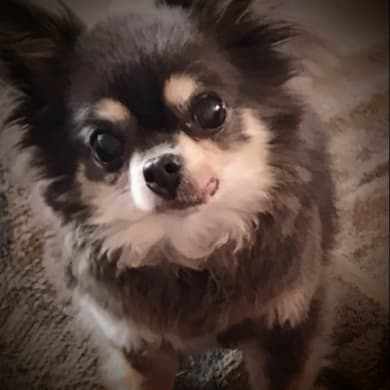 Little Man was brought to shelter at only a few years old after the breeder passed away from cancer. He is a long hair, apple head Chihuahua that weighs 3 pounds. He lived shelter life among many other dogs freely for over a decade. Three years ago I began volunteering there and we've not been apart since. He's now 17 and has experienced the world outside the shelter living with me now. I am single and have no children so he is my little best man and goes everywhere he chooses to go with me, especially work...he loves to visit his friends and eat delicious varieties of dog foods from the shelter that Kim Mathis prepared for each dog every day and night. When he can't find me he howls like a baby wolf for me. If a door shuts between us he barks twice to remind me. Bedtime next to me is what he looks forward to most; that's when the zoomies happen to show me his excitement to finally be in my arms where he sleeps every night. I spoil him in every way possible. We are very close, the two of us are. I rescued him but he has given me a reason to be happy and feel loved and needed every day. I believe he feels the same way about me now also. Jasmine Hillian-shelter volunteer