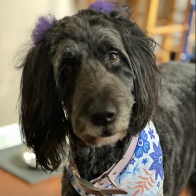 Zuzu is an 8 year old female labradoodle. She is the best and when she was a pup I went through the process of training her to be a therapy dog. She passed her test but the places around here want a minimum of 16 hours a week of volunteer work and I work full time so I let her therapy dog license lapse. She the best and tolerates her 1 year old cavapoo sister very well.
