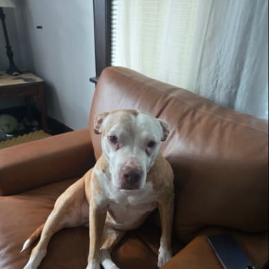 Lucy was adopted from an inner city shelter. She was 4 years old and doesn't love other dogs. The neighborhood is riddled with crime, poverty, gangs etc.. There were so many pitbulls. She was constantly overlooked. I myself overlooked her. Then we happened to meet at an adoption event and she knew. She helped me raise my daughter and instill a love for animals in her. She is such a gift!