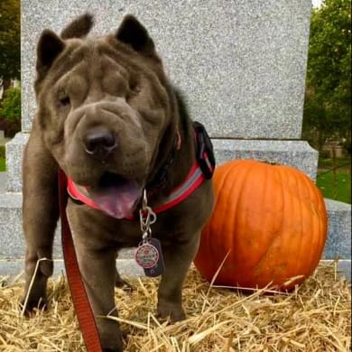 Rescued from the streets, I was 17.5 lbs when I was intaked at HARP shelter in Pittsburgh. At the shelter, I gained about five pounds. I also lost an eye during an entropion surgery. Then a crazy lady saw my photo online and requested to meet me. She gave me a treat and asked me if I wanted to come with her. I ran to her immediately to say yes. She drove me to her work at a kennel and doggy day care where I ran around in a large indoor yard, fence fighting the small dogs. She took me home that night and I immediately cuddled on a soft blanket in a queen size bed and watched TV with her. She told me I understood the assignment. I went to work with her every day for 7 months until we didn't go to work anymore. I now weigh 34 lbs and am never separated from my mom. She puts a red vest on me when we have to grocery shop, but most stores don't mind me. Our favorite and most friendly stores are Marshalls and the CBD store. They give me treats there that make me feel nice.