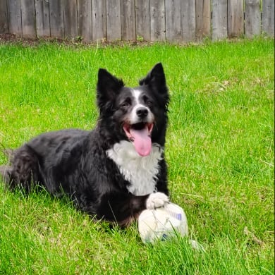 Delilah is a beautiful Border Collie of about 10.5 years old. Incredibly intelligent and sweet as can be, she charms everyone she meets instantly. She is the best friend anyone could ever have and is a fantastic goalie!