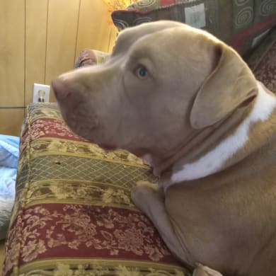 Kobe Lamar Jackson is such a sweetheart. He loves people and loves to give kisses! He's definitely a mommas boy and does not like being alone. He's also afraid of the dark...lol. His favorite things to do, besides sleep, include sunbathing, car rides, long walks and fetching anything you throw for him