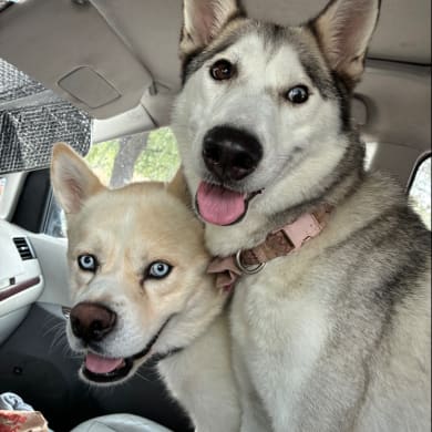 Phantom is sweet but barks to everyone that pass, but listen most of the time is a4 year husky pitbull mix Nova is sweet more approachable than phantom she is a husky mix is more playful run away and never listen but is better behave around people