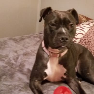 CeCe was used as a bait dog at just 5 months old. I fostered her for second Chance rescue NYC. When she was around 6 mo old. She was very traumatized when I received her I had to carry her outside to go potty and everything. it took her about 3 years for her to adjust here. I sent her to off leash K9 for training for 3 months that helped a lot but it still took a long time for her to trust people other than me.She is my very beautiful Foster . She turned nine this year. And hopefully I have her for many more years to come.