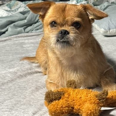 Bob was taking to the spca by his original owners boy friend he was abused severely I saw him on the site and fell in love right then when I came to see him he hugged me in the first two min the shelter said he hadn’t responded to anyone that he choose me they don’t usually let a dog go home right away but that day they saw the love between me and him he was just what I needed after a bitter divorce and losing my pups to my ex husband I was feeling so lost he helped me love again