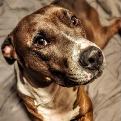 Prince was found when he was 5 months old. He was dumped on the side of the road in a cage. When he was found he was near death, he couldn't stand and was nothing but skin and bones. His left leg didn't develop correctly due to being malnourished. He was at a foster home recovering when I saw him on City of Huntsville Animal shelter Facebook page. He was so scared when I meet him that he peed on me and was shaking so bad. He has been a member of our family for 7 years now!
