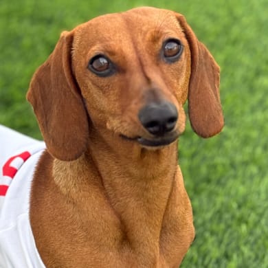 Hi! I'm Tootsie, and I’m a weenie dog, also known as a Dachshund! I'm super friendly and love snacks, especially if they're dropped on the floor! I also enjoy playing tug and ball! One of my favorite ways to show affection is to "cobb" (cuddle/snuggle) on my family's feet! Woof! 🐾🌭
