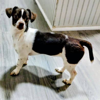 Esmae is supposed to be Chihuahua/Jack Russell mix, but I have to be honest...I don't think it's true. She's a crazy pup, and she keeps us laughing.