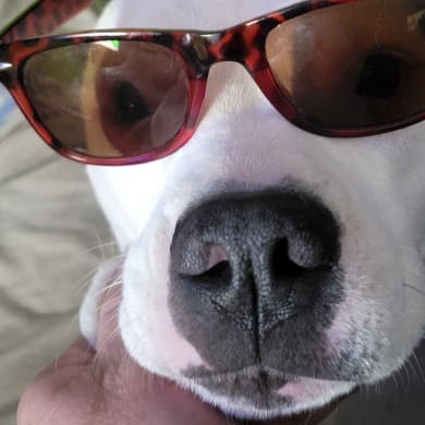 My dogs heard something at the backdoor which made them bark and go crazy for 10 mins. Next door the neighbor was punching Bunny in the face she was crying. i saw him holding her out shoulder length gripped by her neck punching a bruise on her face over and over as she balled out crying. i instantly yelled "STOP THAT SHIT NOW!" he was startled dropped her. she ran to the fence climbed to me . . . . i locked her inside and called the cops. . .there was a lot of drama after i will spare you . . i dealt with him and the cops she been with me since after one night in the shelter.