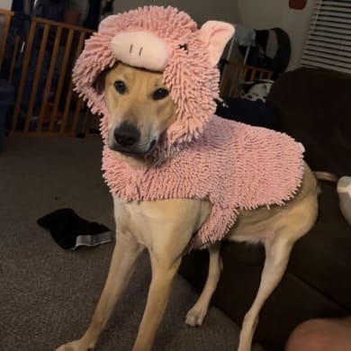 Texas gal here to steal your heart with her happy butt dances. Nala loves to love, she has the sweetest heart and is a great protector. She is my emotional support animal but I think we both rely on each other so much!! Sometimes she can be a cry baby but only when she doesn’t get her way. This was her during Halloween we dressed her as a little piggy bc she always tries to go for food that has been dropped!!