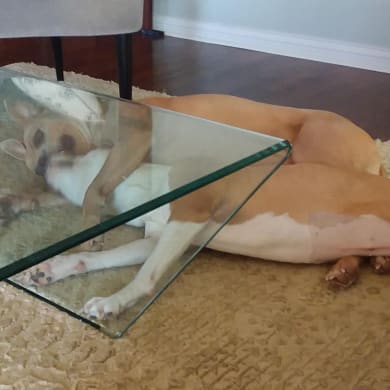 Squirt, (an Adore-A-Bull rescue from Cincinnati), was lonely after losing his older sister Jazzy, (another Adore-A-Bull rescue). The perfect cure? How about a wrestling partner in the form of Sofie, a rescue from Cincinnati Animal CARE. Rescues that rescue us.