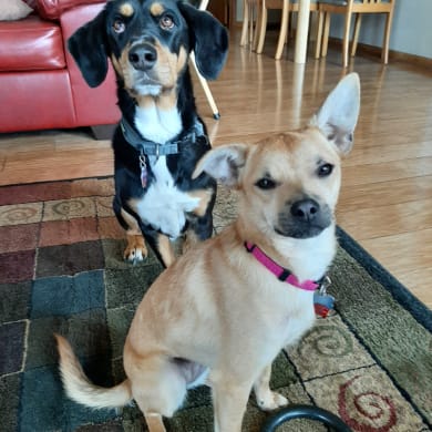 Matilda (beagle mix) is a rescue dog from Texas and Libbi (chihuahua/miniature pinscher) is from one of the southern states. I don't recall which. They are both best buds and mortal enemies, depending on Matilda's mood.