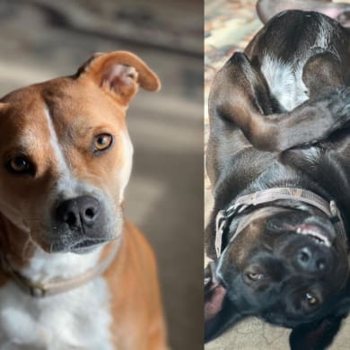 Bailey is a rescue pit/beagle mix. Vader is a rescue shepherd/lab mix. Both love attention, naps in the sun, chicken treats and their pet cats.