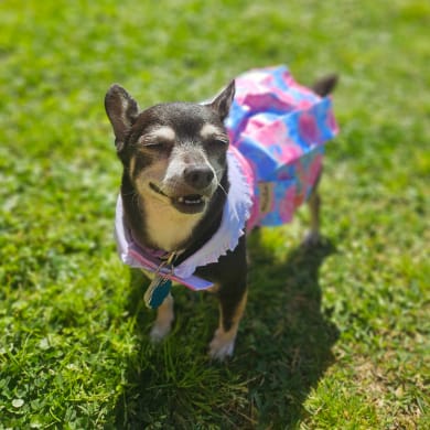 Posey is a sweet 11 year old Chihuahua mix that I adopted from Long way Home Adoptables in Bryan, Texas in March 2023. She loves little squeaky toys and running in the back yard. Posey is snuggly and very loving.