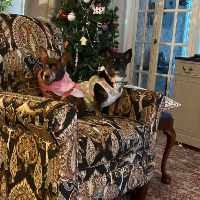Maya was rescued in 2015 very pregnant! She gave birth to 7 pups! Once her pups were adopted we were lucky enough to adopt this sweet and loving mama! Maya is about 13-14 years old which is a guess because she was running free when rescued. She has had numerous health issues over the years but we have been fortunate to help her through each illness. We love her💙! Gracie was recently adopted in 2024 from Animal Rescue Kingdom (ARK) out of Texas! She wasn’t very old and we suspect she had puppies! She went through heartworm treatment and is fine now! She is a spitfire ! Due to her history which we suspect wasn’t good it takes her awhile to warm up but now she loves having a family and loves her sister Maya, who she may think is her mommy! We love her too💙💙