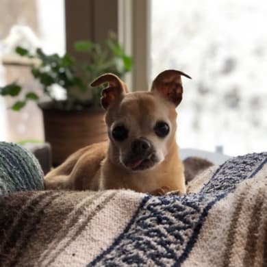 Inbred chihuahua rescued from a backyard breeder situation. Adopted with another brother, Kai, both with congenital concerns. Two love bugs.
