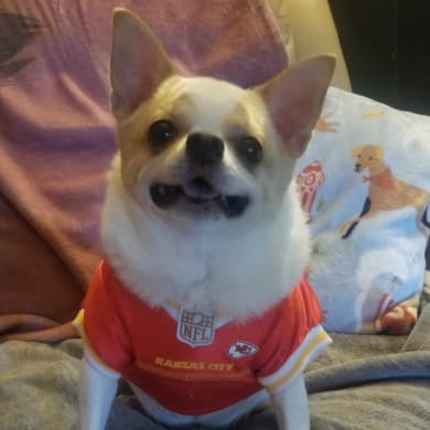 Mitsy was born in July of 2018 and surrendered to Ozarks Kat and K9 Shelter from a hoarding situation. She was adopted by Angi in September of 2018. Her best friend is Skye, her APBT house mate since puppyhood.