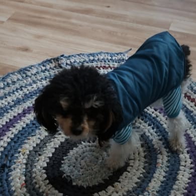 Sadie May 6a Yorkiepoo, 3 years old and spoiled rotten. Sadie May loves belly rubs and playing with mr.glove and all her toys, she also loves to play with her sister Tillie Fay which is her biological half sister, same dad different moms. We saved them from a back yard breeder, she would have several more siblings but two is all we can physically and financially keep. I don't know what I'd do without my girls.