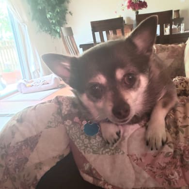 14 years old going on 7. Loves walks, treats and snuggles. Will bark at literally any animal in the yard or walking by. My protector🐾💗