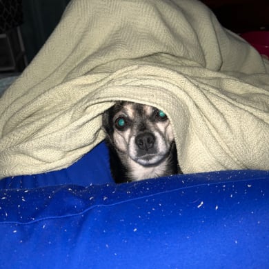 Truffles was adopted in May 2025. She was 10 years old and sadly just returned to the shelter after living with her previous family for 5 years. She was very skittish at first but has since claimed all of us as her own. Truffles is very playful and loves jerky treats. She is an expert at burrowing and loves piles of blankets. She and her adopted sister, Paisley, make a great chorus when they see us pull into the driveway (or if they see another dog encroaching on their "turf"). Sometimes when she gets to excited to see me she launches herself off the bed and into my face. She has given me a few love bruises. We are very lucky to have such an amazing pup!