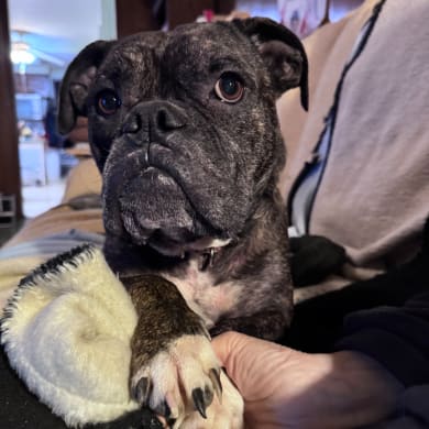Sima was a rescue. She had lived on the streets for some time. When the shelter finally caught her she was very thin. She had had puppies. She was scared of men and any kind of sticks. She was adopted but returned in two weeks. She spent a long time at the shelter. It has taken over a year to decompress her. She is doing really well now. She is a great dog.